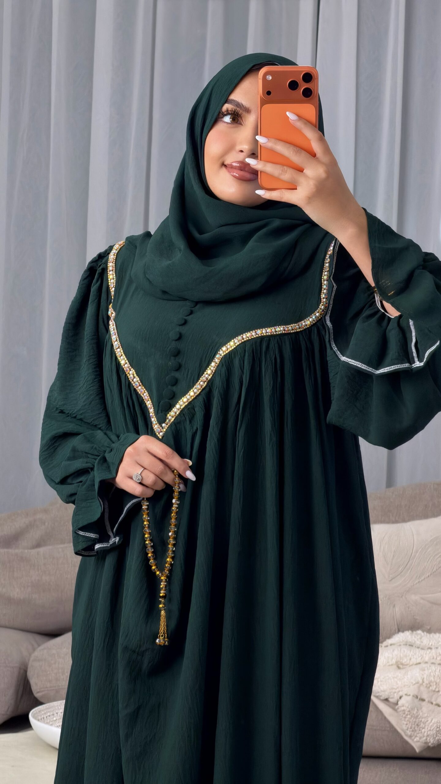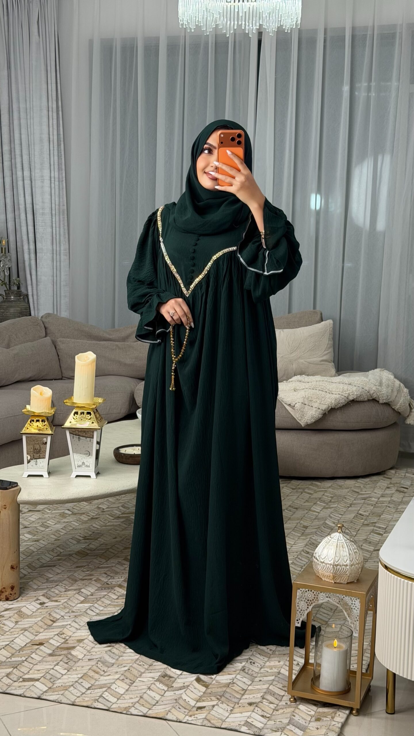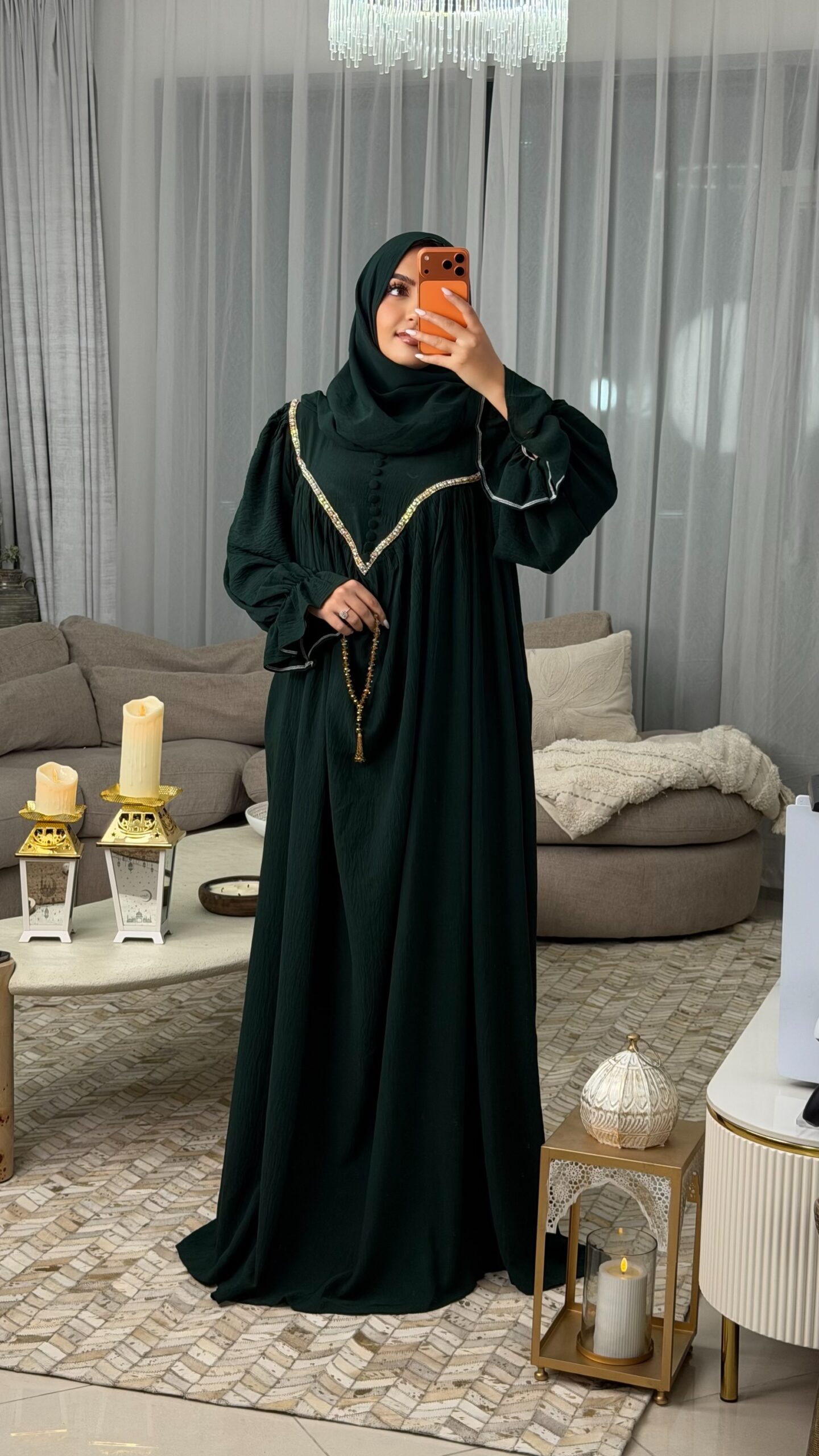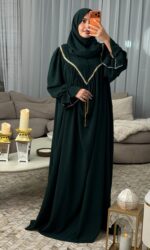 ✦ مصنوع من قماش الكريب دوباش، المعروف بخفته ونعومته، مما يجعله الخيار المثالي لفصل الصيف، حيث يمنحكِ إحساسًا بالبرودة والراحة أثناء الصلاة.