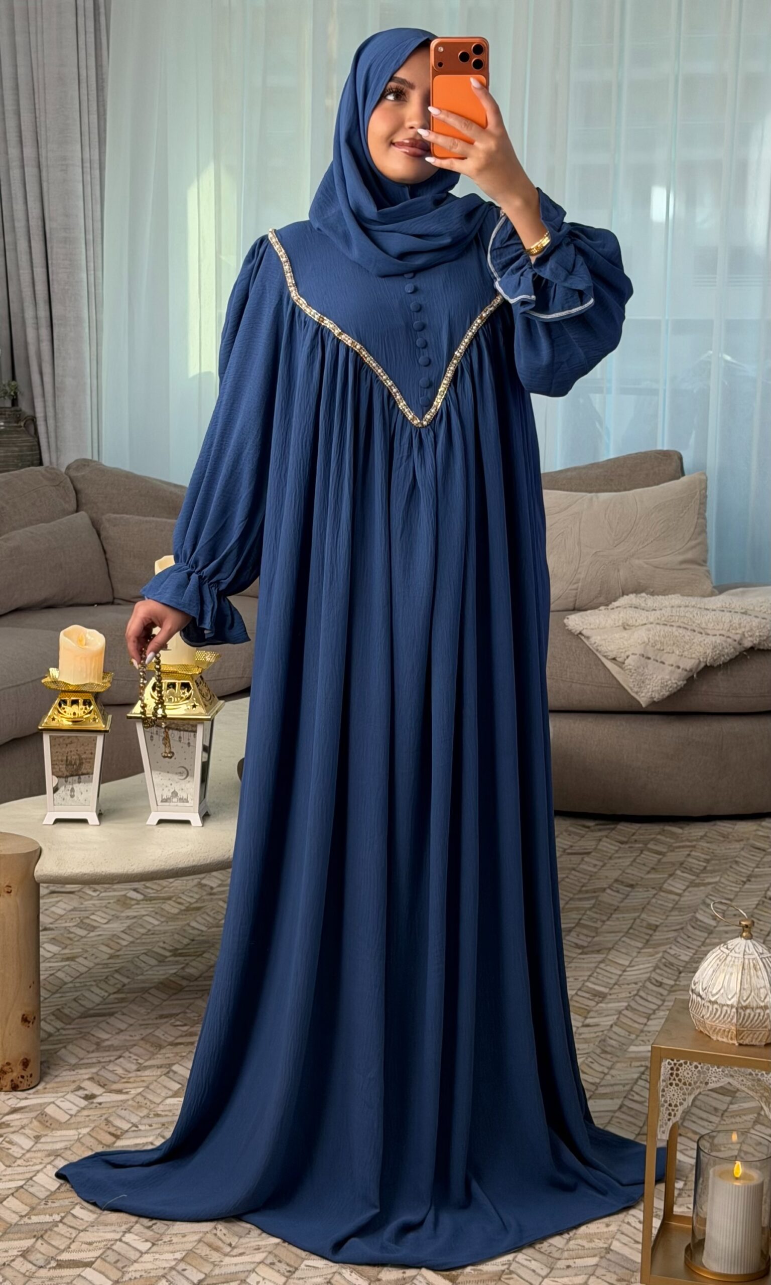 ✦ مصنوع من قماش الكريب دوباش، المعروف بخفته ونعومته، مما يجعله الخيار المثالي لفصل الصيف، حيث يمنحكِ إحساسًا بالبرودة والراحة أثناء الصلاة.
