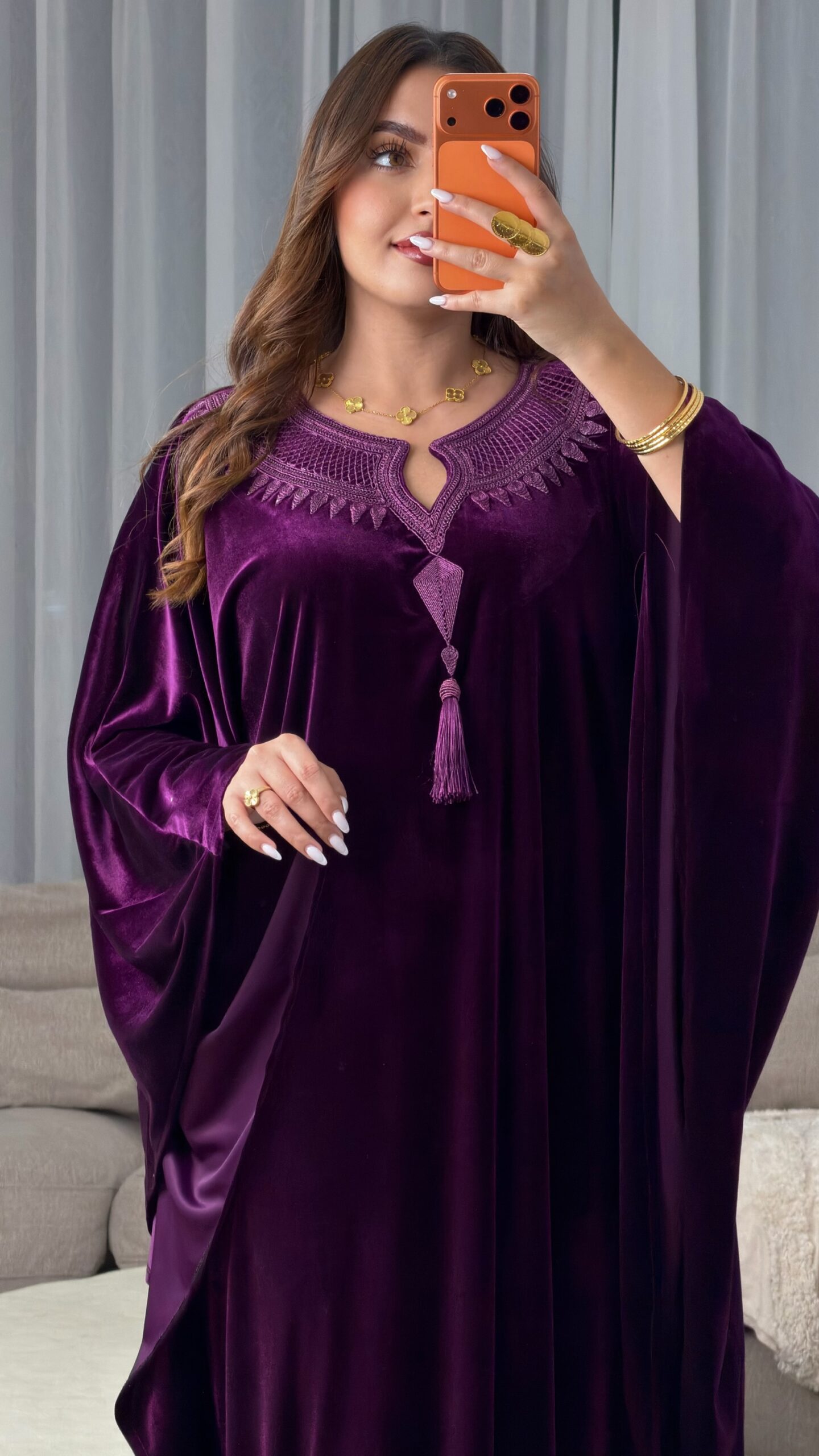 مصنوع من قماش القطيفة Royal الفاخر، تم تفصيله بقصة الفراشة التي تمنح حرية وأناقة في الحركة وتناسب جميع القامات.