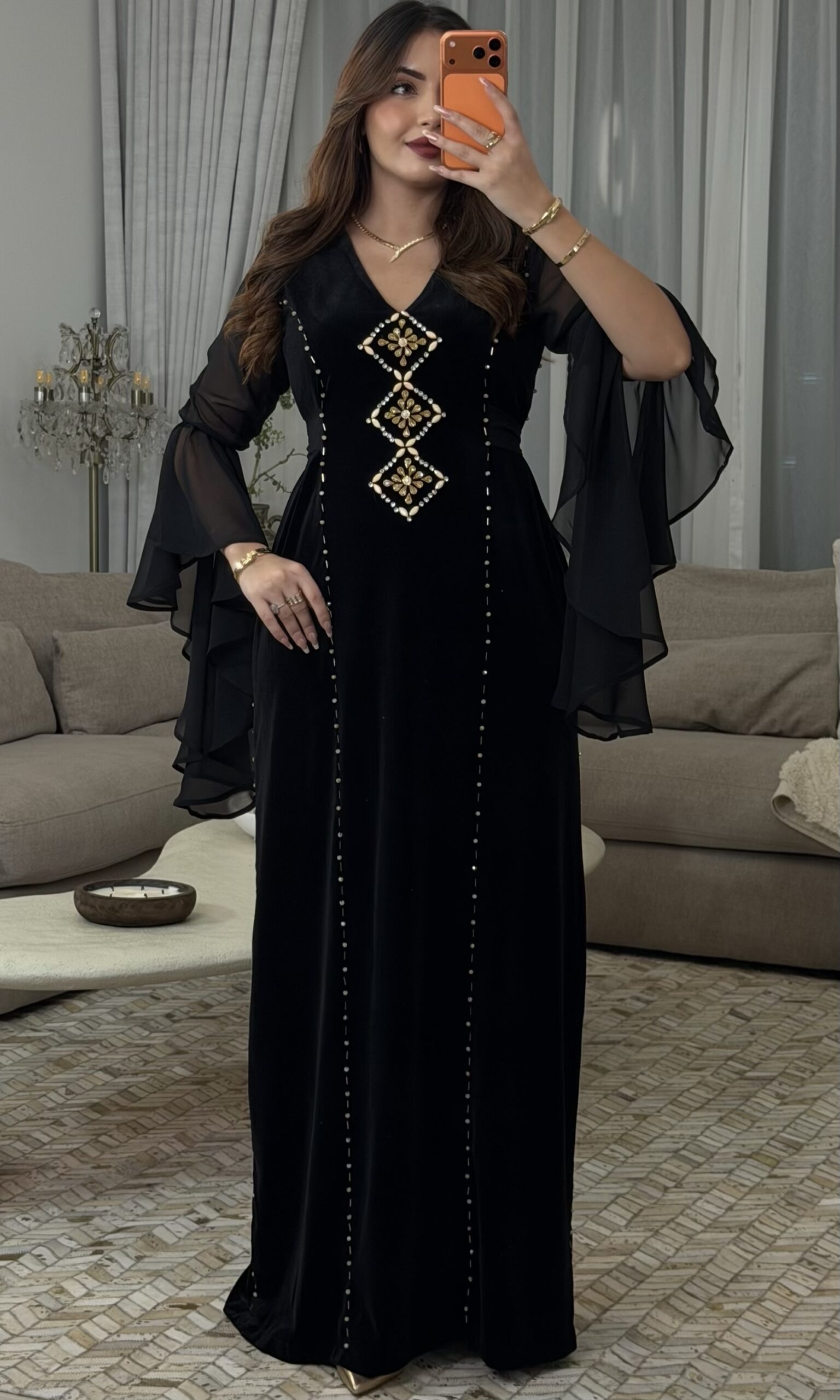 تصميم استثنائي يجمع بين الأناقة الكلاسيكية والفخامة العصرية، ليمنحك إطلالة ملكية لا تُنسى.