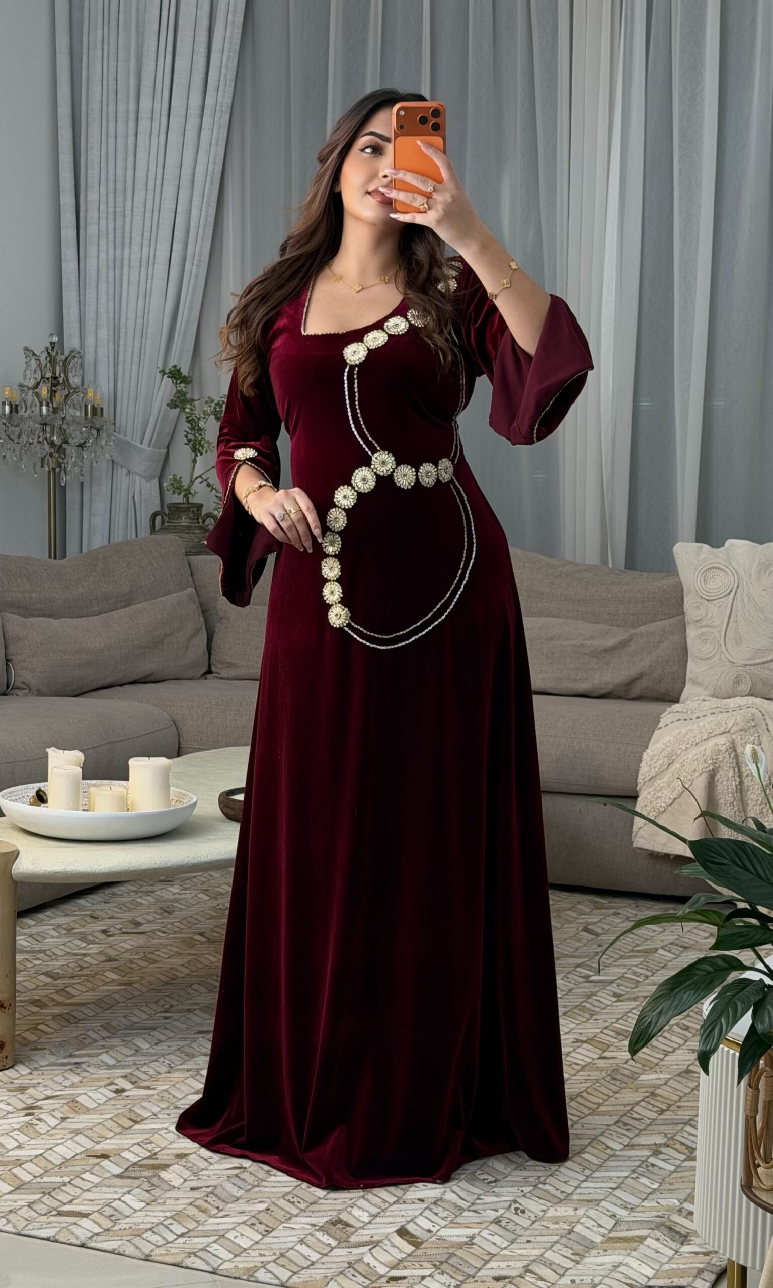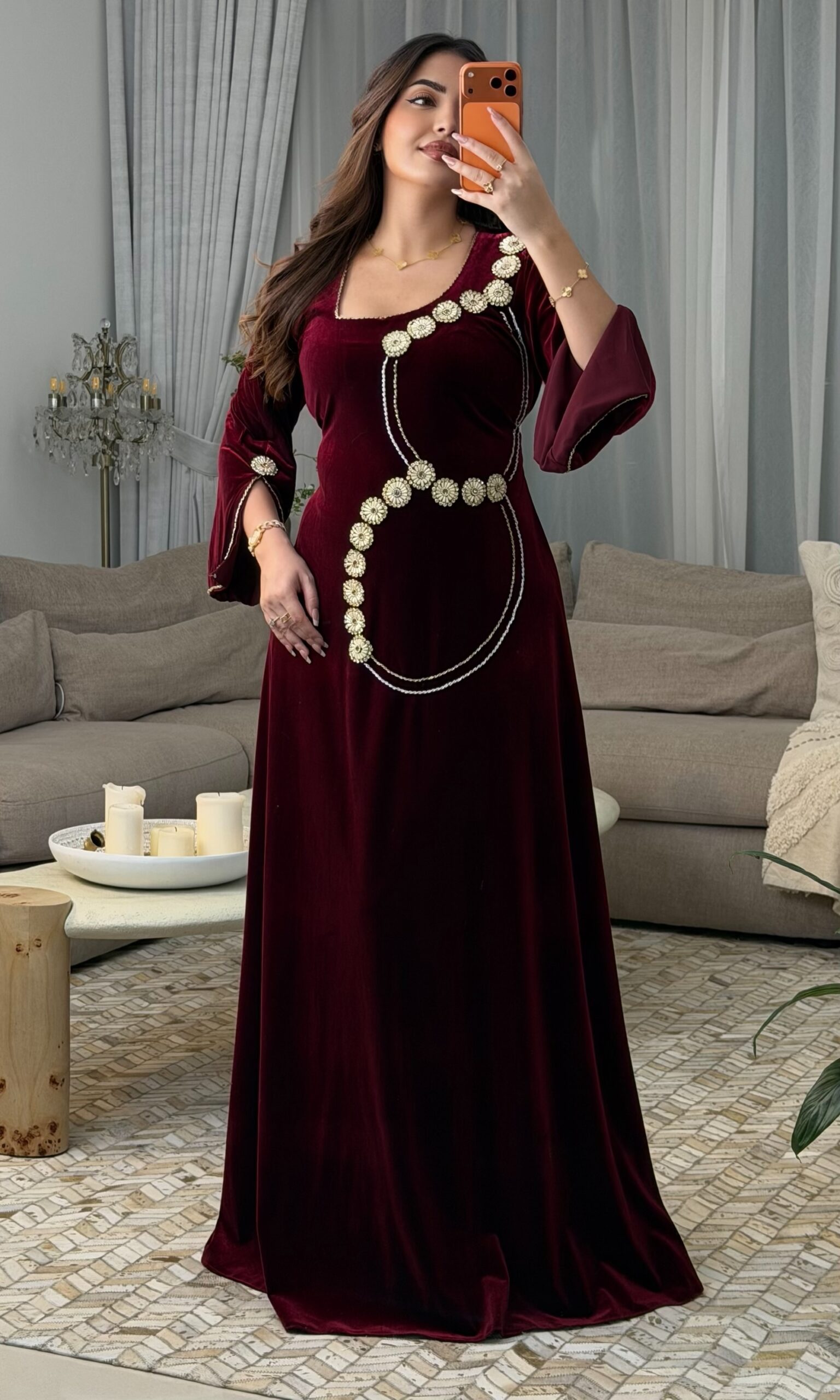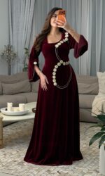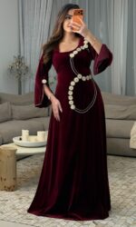 صُنع هذا الفستان من قماش القطيفة الفاخر ليمنحك إحساسًا بالراحة والفخامة في آن واحد. يتميز بـ حزام يُربط من الخلف لتحديد الخصر وإبراز جمال القوام.