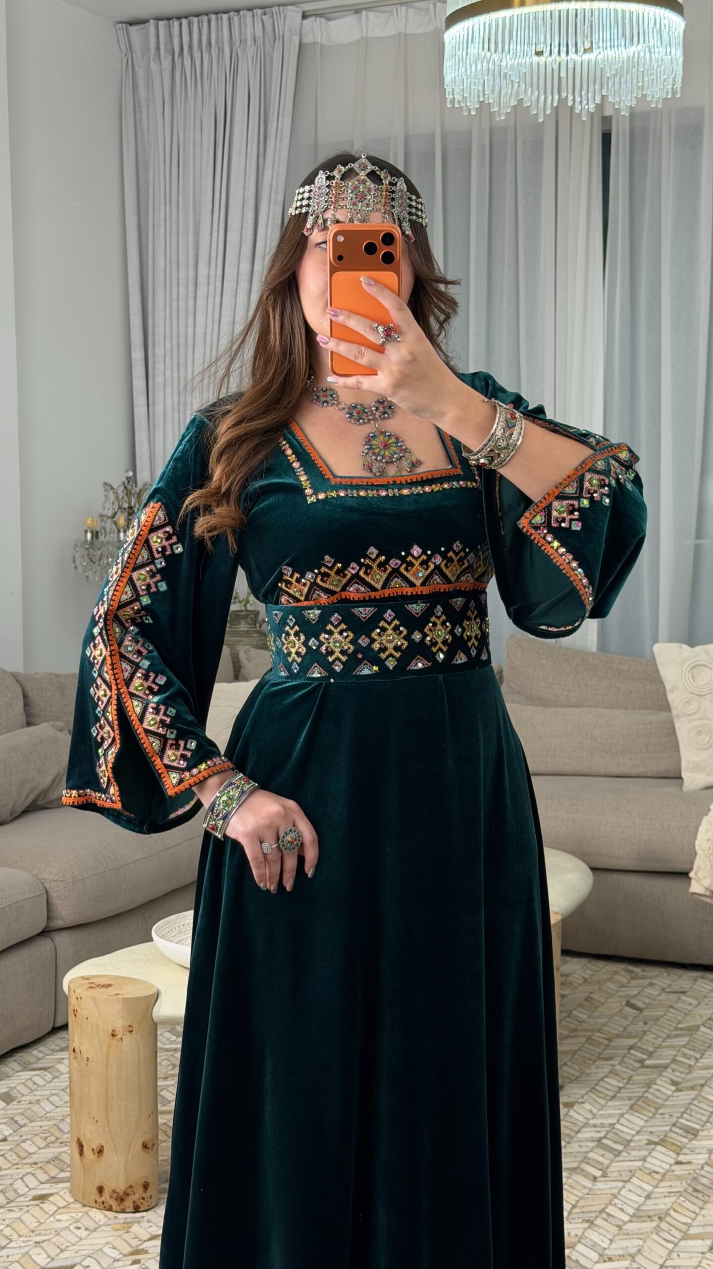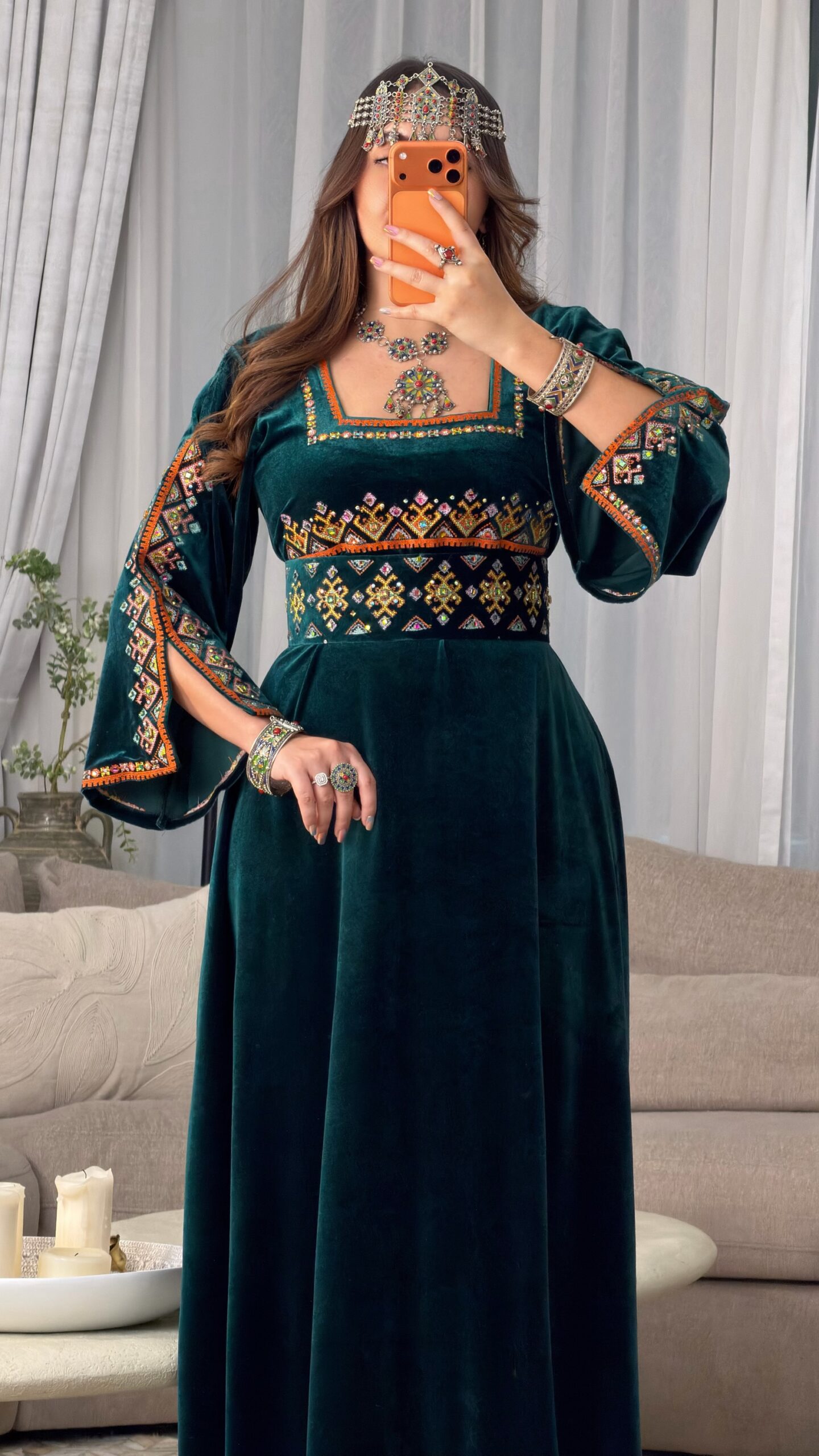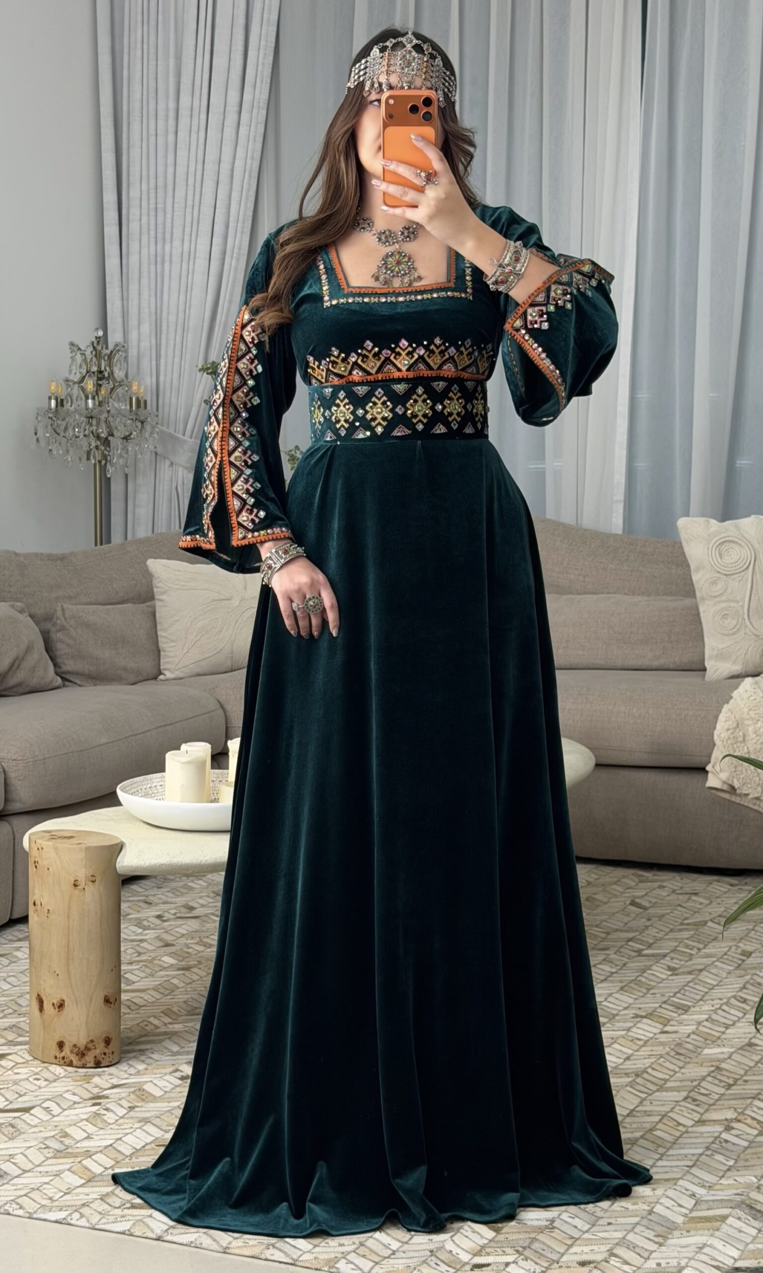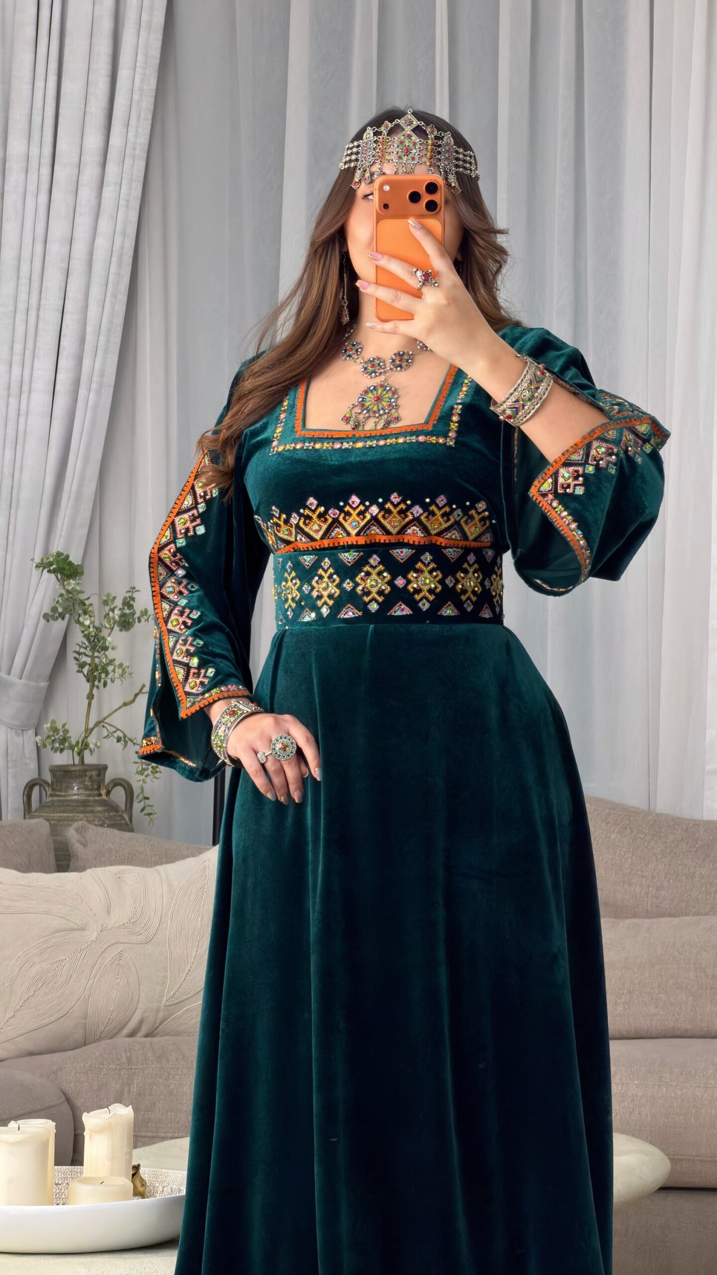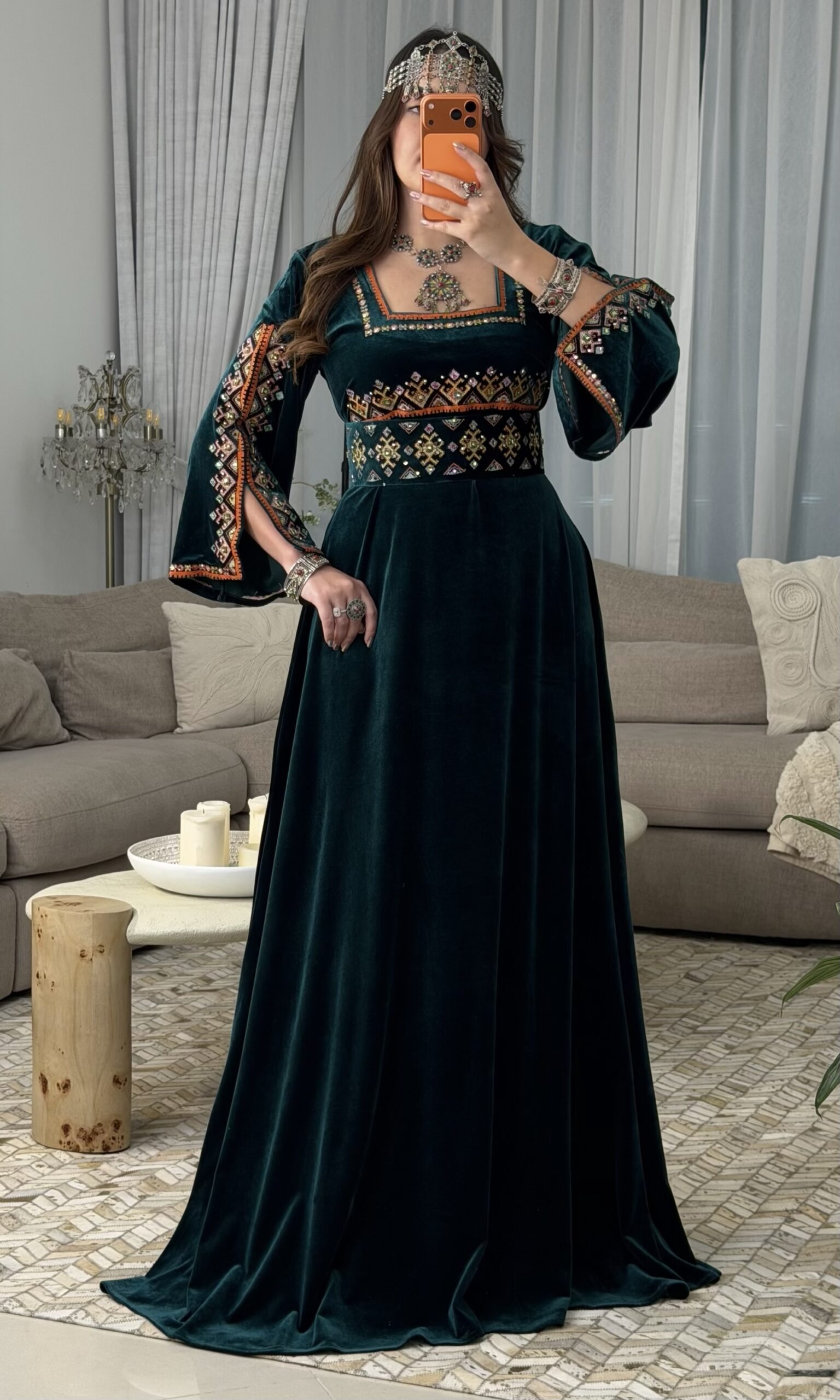 فستان فاخر من قماش القطيفة الرّويال، ينساب بنعومة تليق بالأميرات الأمازيغيات،