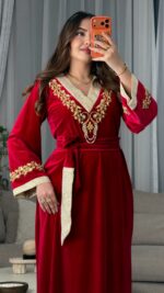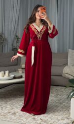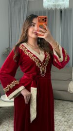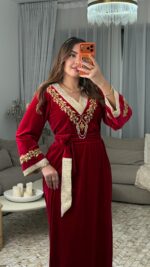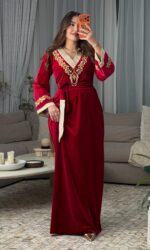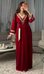يأتي الفستان مع حزام مصنوع من القطيفة والبروكار لتحديد الخصر وإبراز أنوثتك بأسلوب راقٍ.