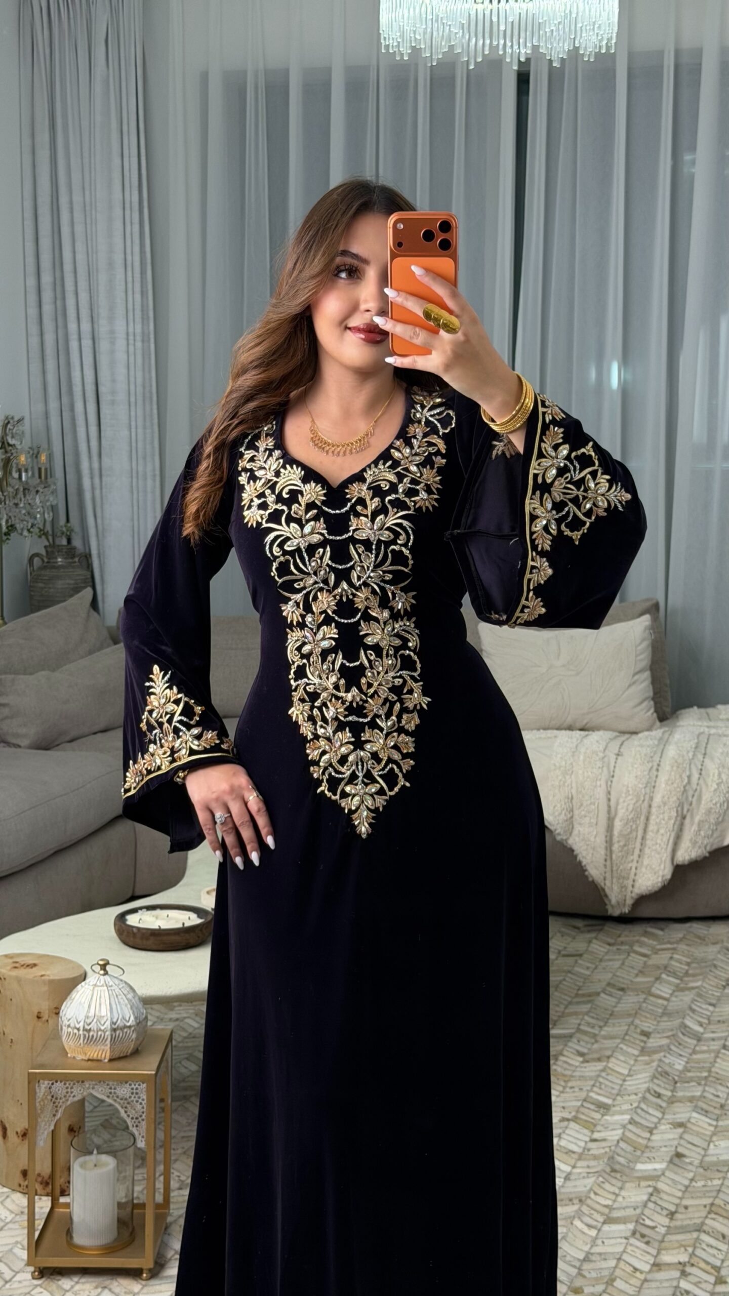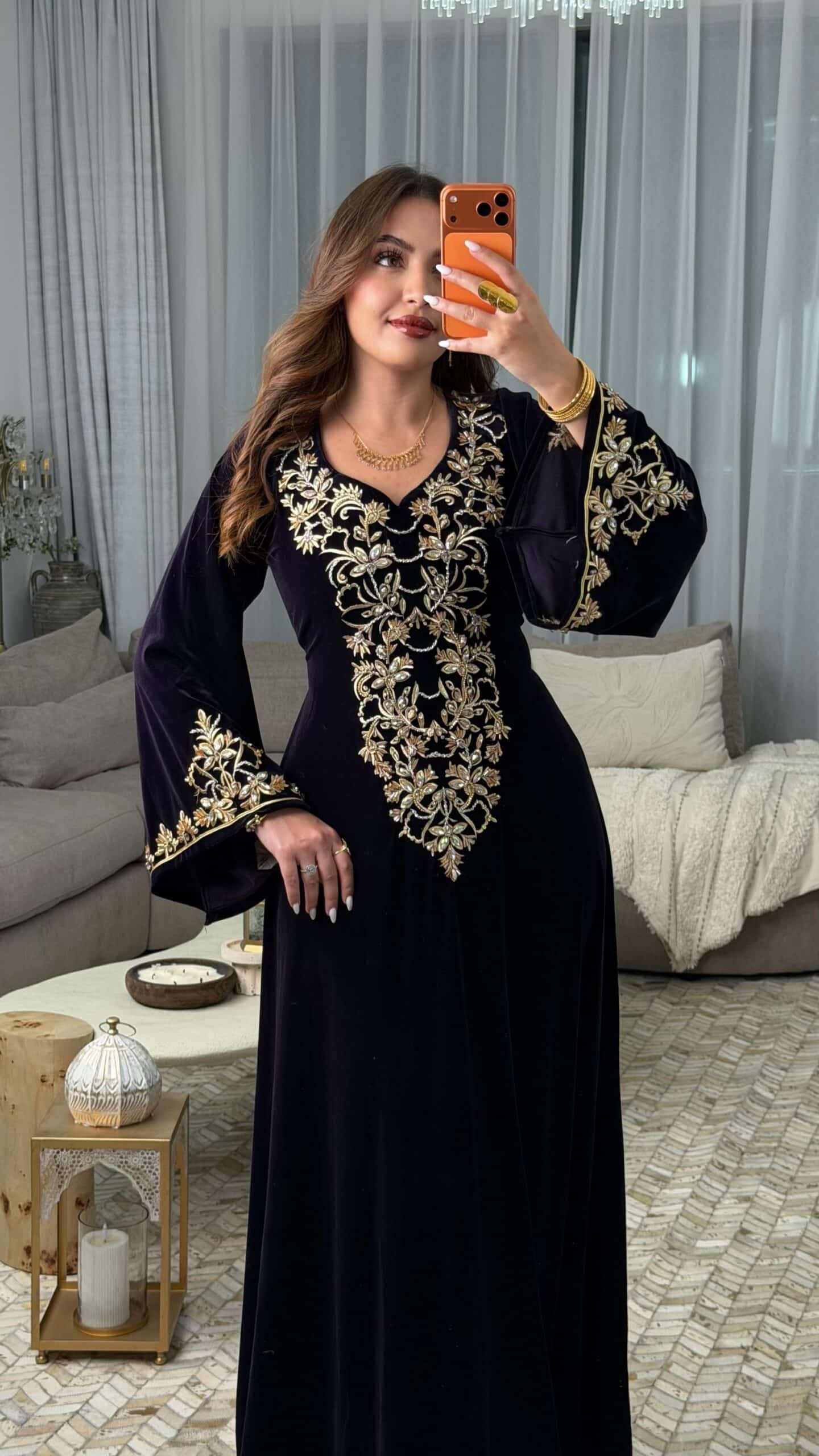 مصنوع من قماش القطيفة الرويال الفاخرة، يمنحك إحساسًا بالفخامة والنعومة مع كل حركة.