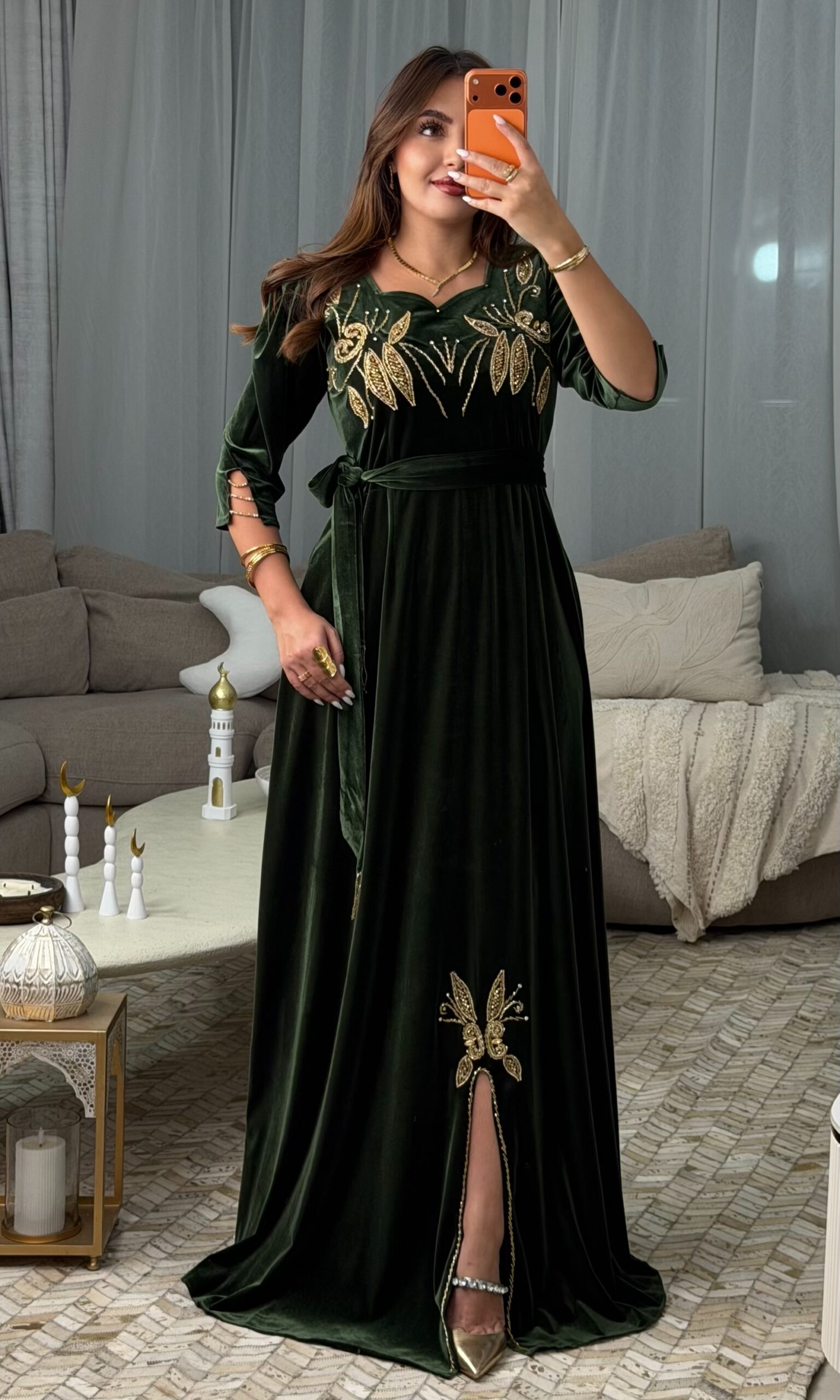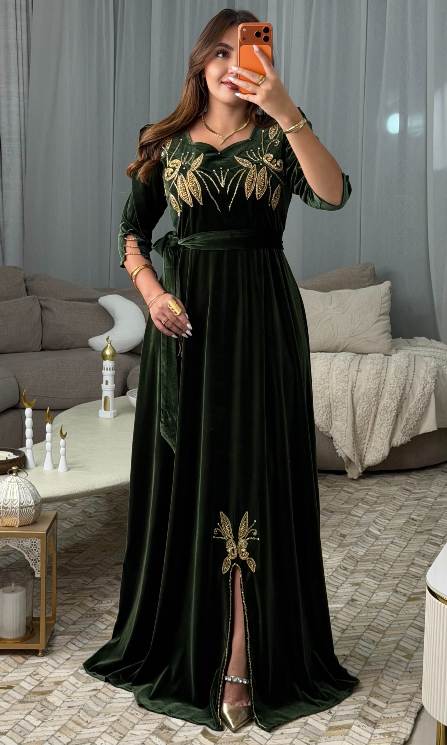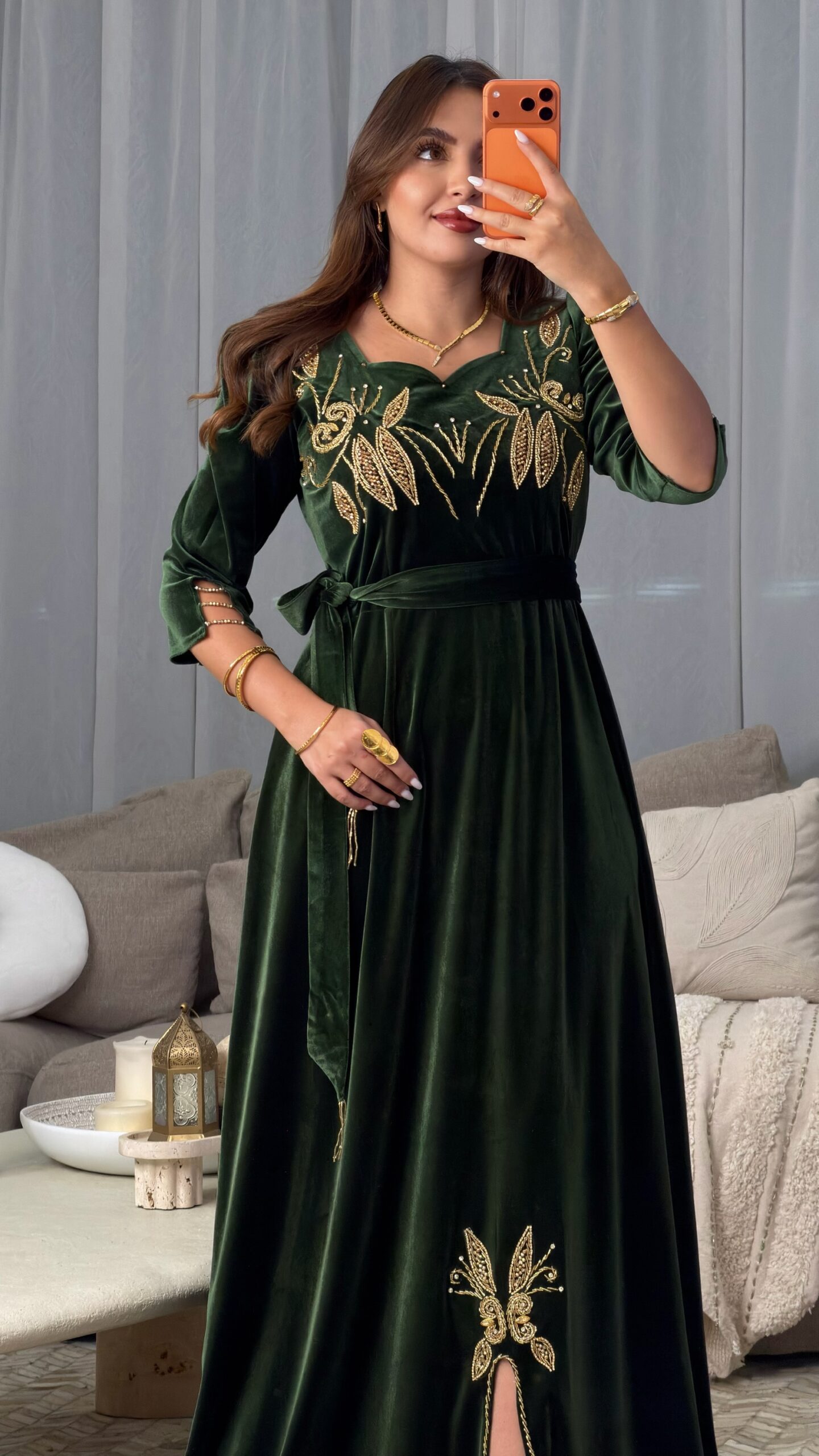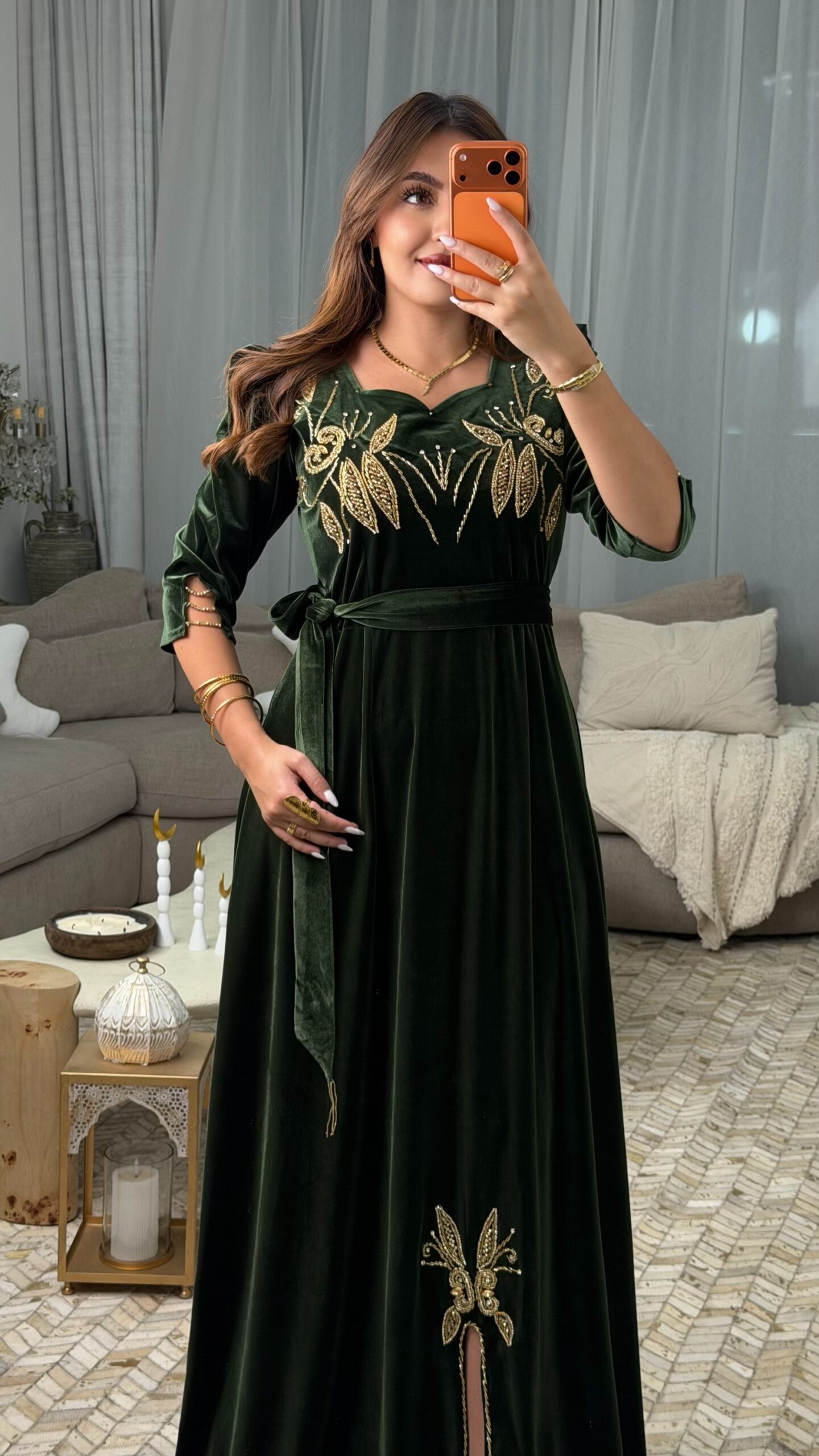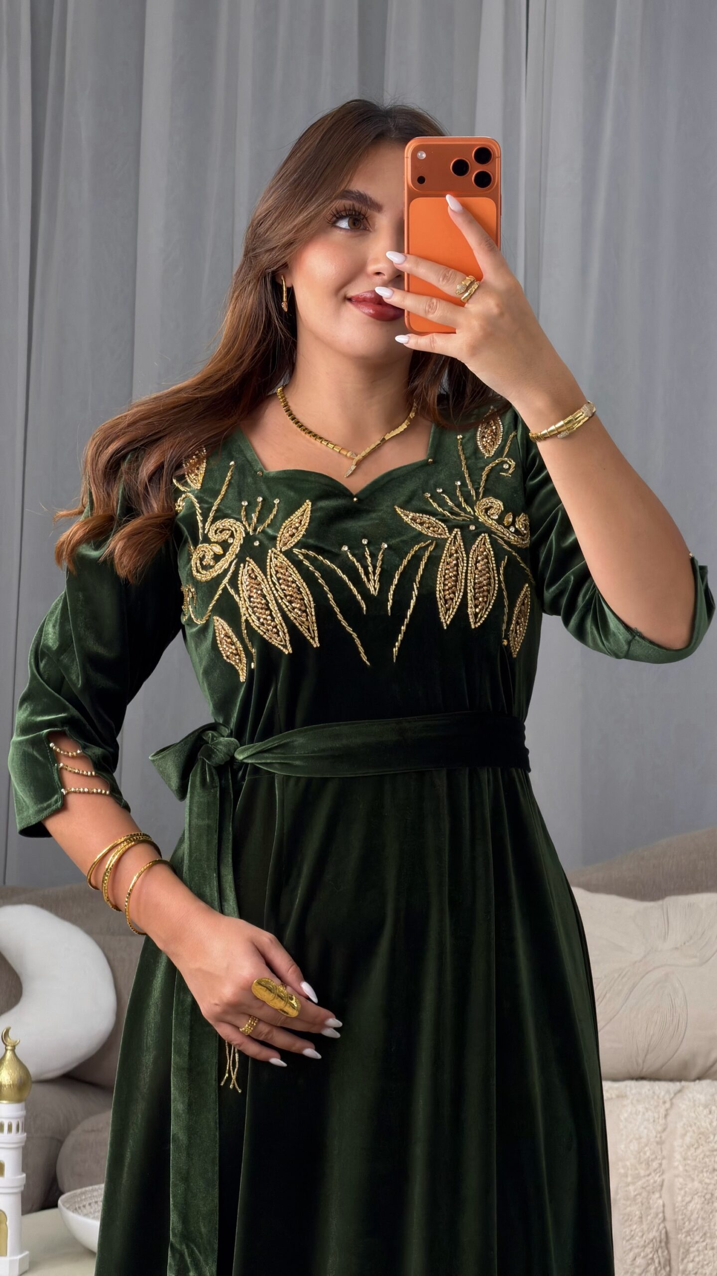 مصنوع من قماش القطيفة الفاخرة بلمسة ناعمة وانسيابية تعكس الأناقة والرقي.