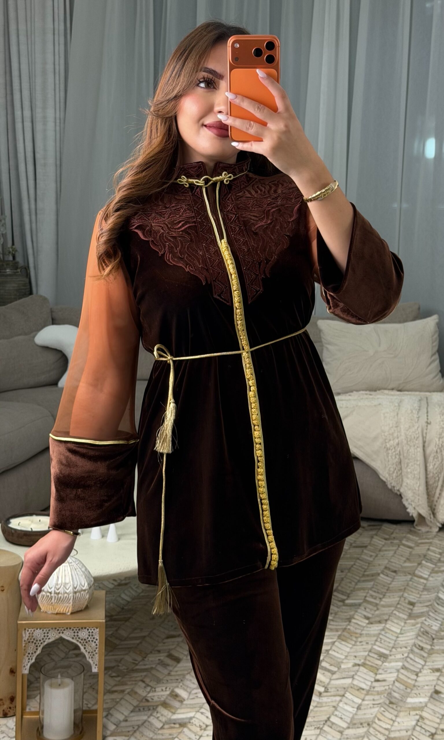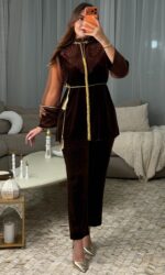 مصنوع من قماش القطيفة الفاخرة ليمنحك إطلالة راقية ودافئة.