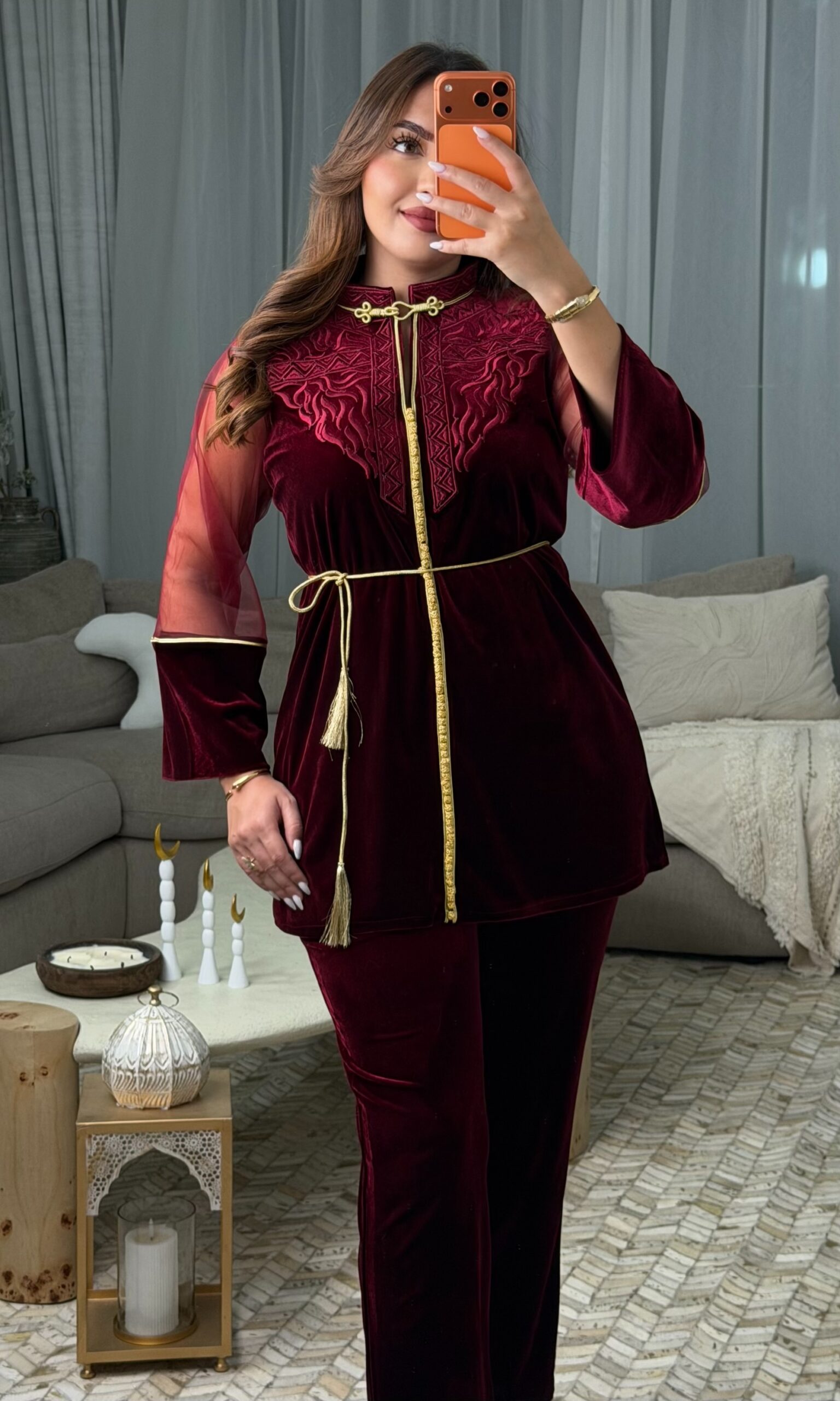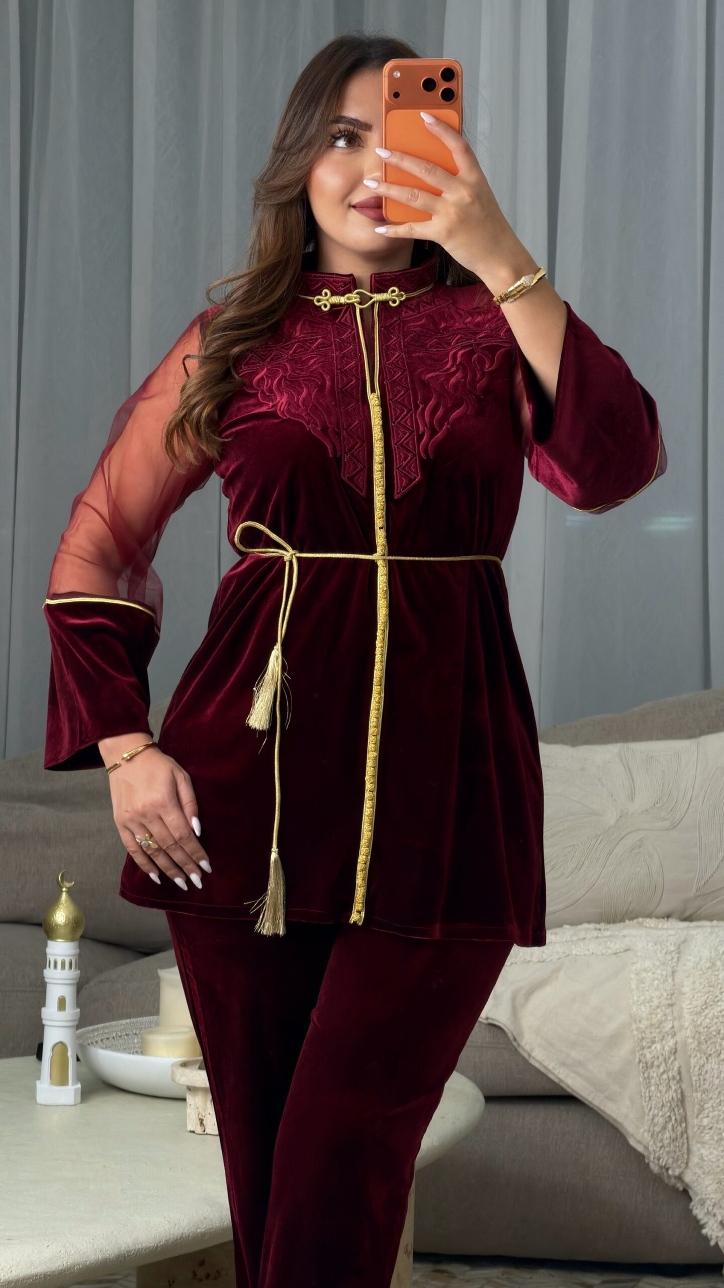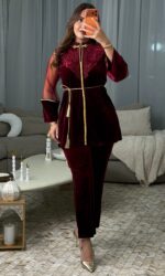 مصنوع من قماش القطيفة الفاخرة ليمنحك إطلالة راقية ودافئة.