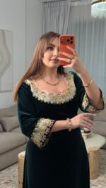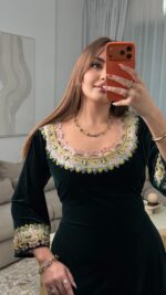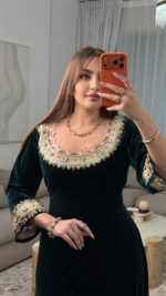 تم تطريز الصدر والأكمام بتقنية مميزة وجديدة كليًا على قماش الأورغانزا، ما يضفي على التصميم طابعًا فريدًا وغير مألوف، ويمنحه لمسة عصرية ممزوجة بالأصالة.