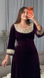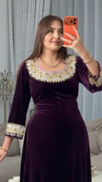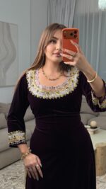 تم تطريز الصدر والأكمام بتقنية مميزة وجديدة كليًا على قماش الأورغانزا، ما يضفي على التصميم طابعًا فريدًا وغير مألوف، ويمنحه لمسة عصرية ممزوجة بالأصالة.